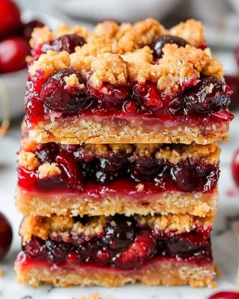 Delicious cherry cobbler bars with a buttery crust and sweet cherry filling, perfect for any occasion.