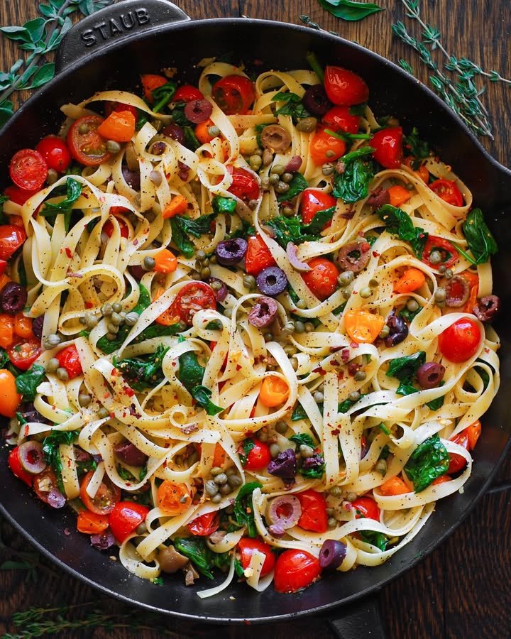 This My most requested Mediterranean Pasta So healthy comes together with vibrant, pantry-friendly ingredients that create a symphony of smoky, briny, and herbaceous flavors.