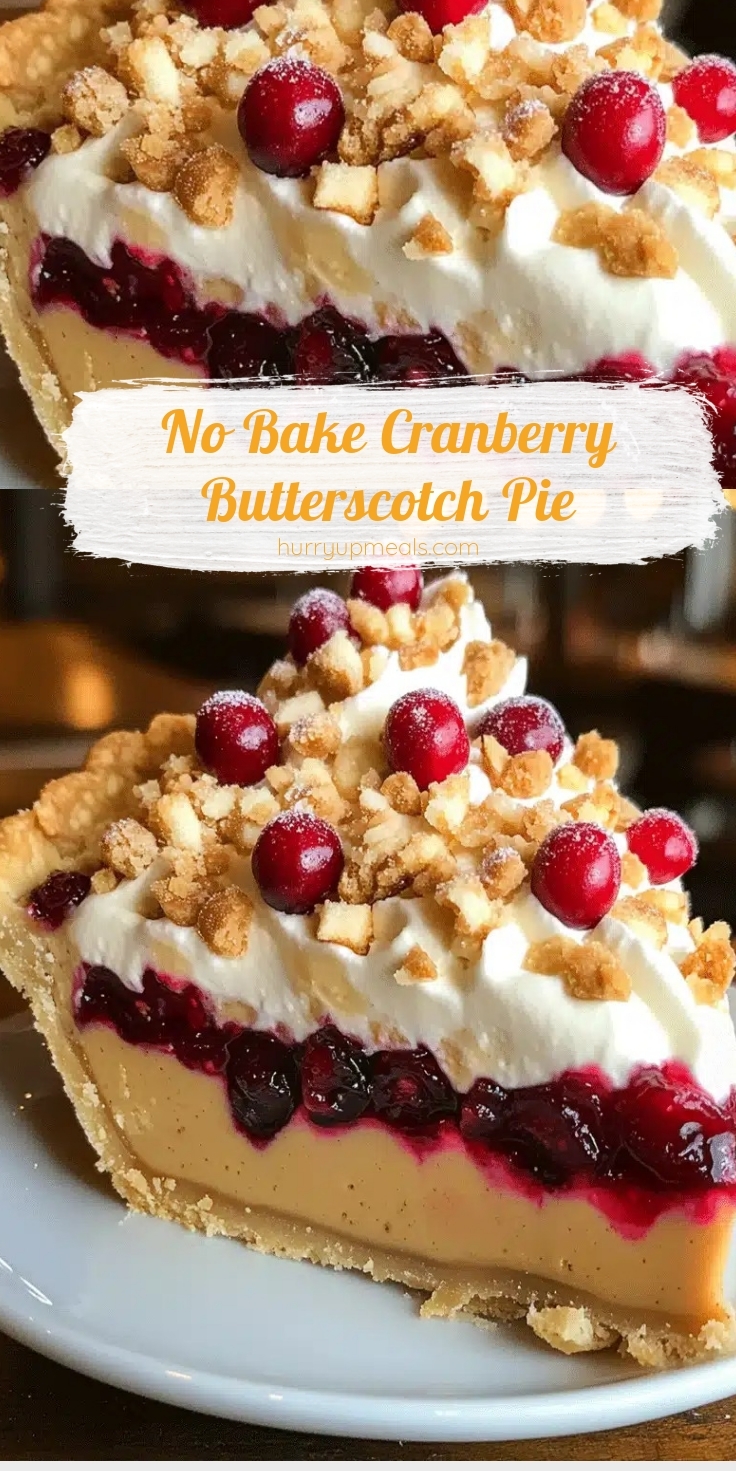 No Bake Cranberry Butterscotch Pie is a symphony of contrasting yet harmonious flavors and textures. The butterscotch layer is luxuriously creamy and rich, melting on your tongue with a deep caramelized sweetness. Meanwhile, the cranberry swirl adds a bright, tangy punch that cuts through the richness, creating a perfect balance. Each bite delivers a delightful mix of smooth and slightly chewy textures, especially if you fold in toasted nuts or a crumbly graham cracker crust for extra crunch. The aroma alone is irresistible, with warm vanilla and brown sugar notes mingling with the zesty fragrance of fresh cranberries. Because the pie requires no baking, the flavors stay vibrant and fresh, making it a refreshing yet indulgent treat. Even though it’s simple to prepare, No Bake Cranberry Butterscotch Pie feels decadent, thanks to layers of velvety filling and bursts of fruity tartness. For an extra touch, try adding a hint of cinnamon or orange zest to elevate the sensory experience even further.