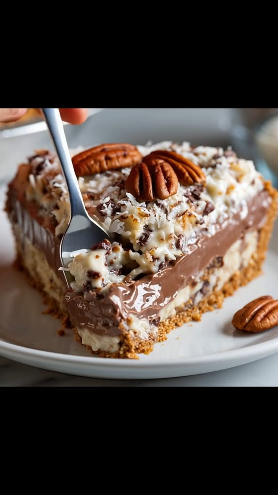 A rich, creamy, and irresistibly easy no-bake pie with layers of chocolate, coconut, and pecans.