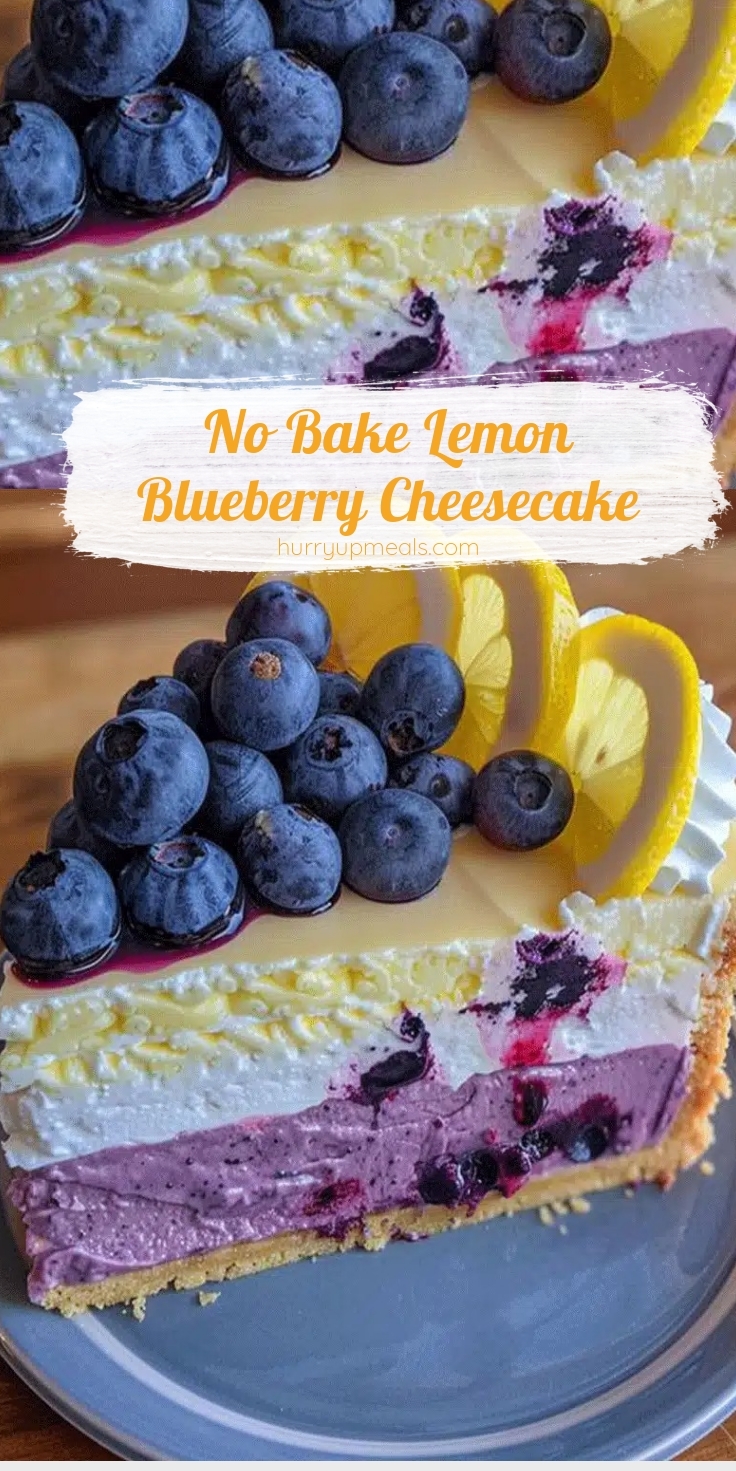 First, grab a large mixing bowl and crush your graham crackers until they turn into fine crumbs. Meanwhile, melt the butter and mix it with the crumbs until they stick together. Press this mixture firmly into the bottom of a springform pan to create your crust, then pop it in the fridge to set. While the crust chills, whip the cream cheese in another bowl until it’s smooth and creamy. Next, add the powdered sugar, lemon zest, and lemon juice, then whisk everything until well combined. In a separate bowl, beat the heavy cream until stiff peaks form, then gently fold it into the cream cheese mixture for a light, fluffy texture. Spread this filling evenly over the chilled crust, smoothing the top with a spatula. For the blueberry topping, simmer fresh or frozen blueberries with a bit of sugar and lemon juice until they thicken slightly. Let the sauce cool before drizzling it over the cheesecake. Finally, refrigerate your No Bake Lemon Blueberry Cheesecake for at least 4 hours, though overnight is even better. To save time, prep the crust and filling the night before, then add the topping the next day. If you’re short on time, use store-bought blueberry jam instead of making the sauce from scratch—just warm it slightly for easier spreading.