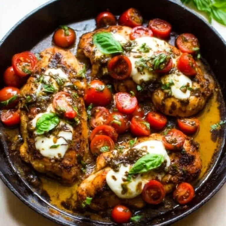 This one-pan juicy chicken is an excellent candidate for meal prep. Cook a double batch on Sunday, store the components separately, and assemble quick lunches by reheating the chicken and sauce before adding fresh tomatoes, mozzarella, and basil.