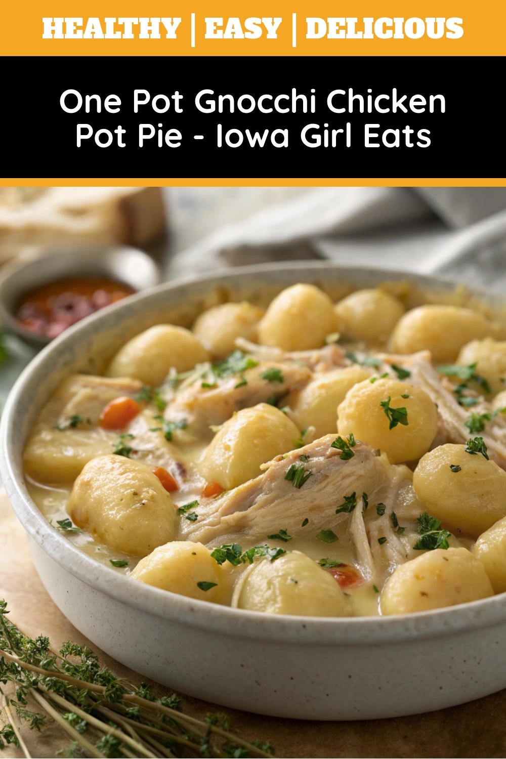 The story of chicken pot pie is a deeply American one, rooted in practicality and comfort. Early settlers created hearty, savory pies to make the most of their ingredients and feed a family efficiently. While the classic version is beloved, the One Pot Gnocchi Chicken Pot Pie – Iowa Girl Eats is a beautiful and clever twist on that tradition. It swaps the sometimes-fussy pastry crust for soft, pillowy potato gnocchi, which steam right on top of the filling, creating dumpling-like clouds of comfort.