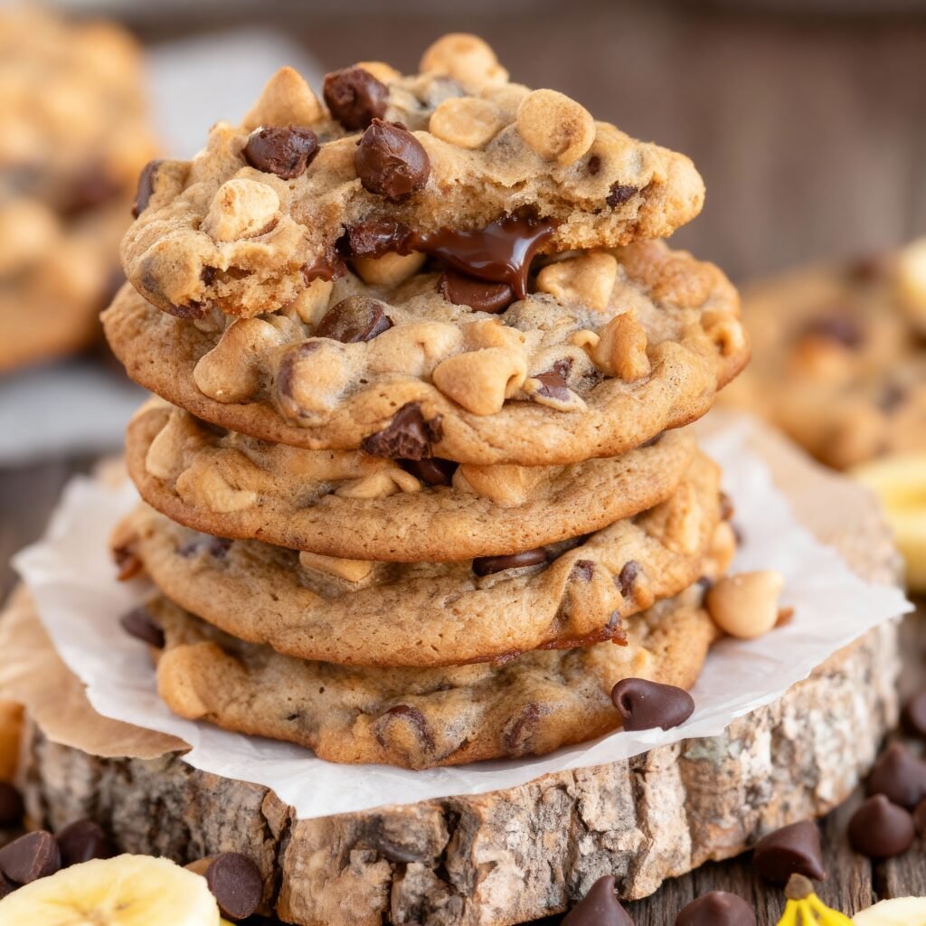 Soft and chewy cookies combining the classic flavors of peanut butter, banana, and chocolate chips. These cookies are perfect for using up ripe bananas and make a delicious treat for any occasion.
