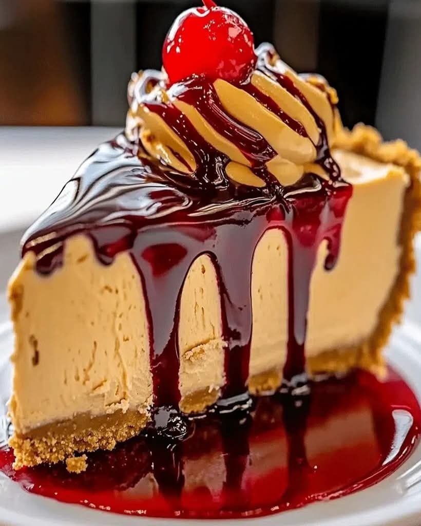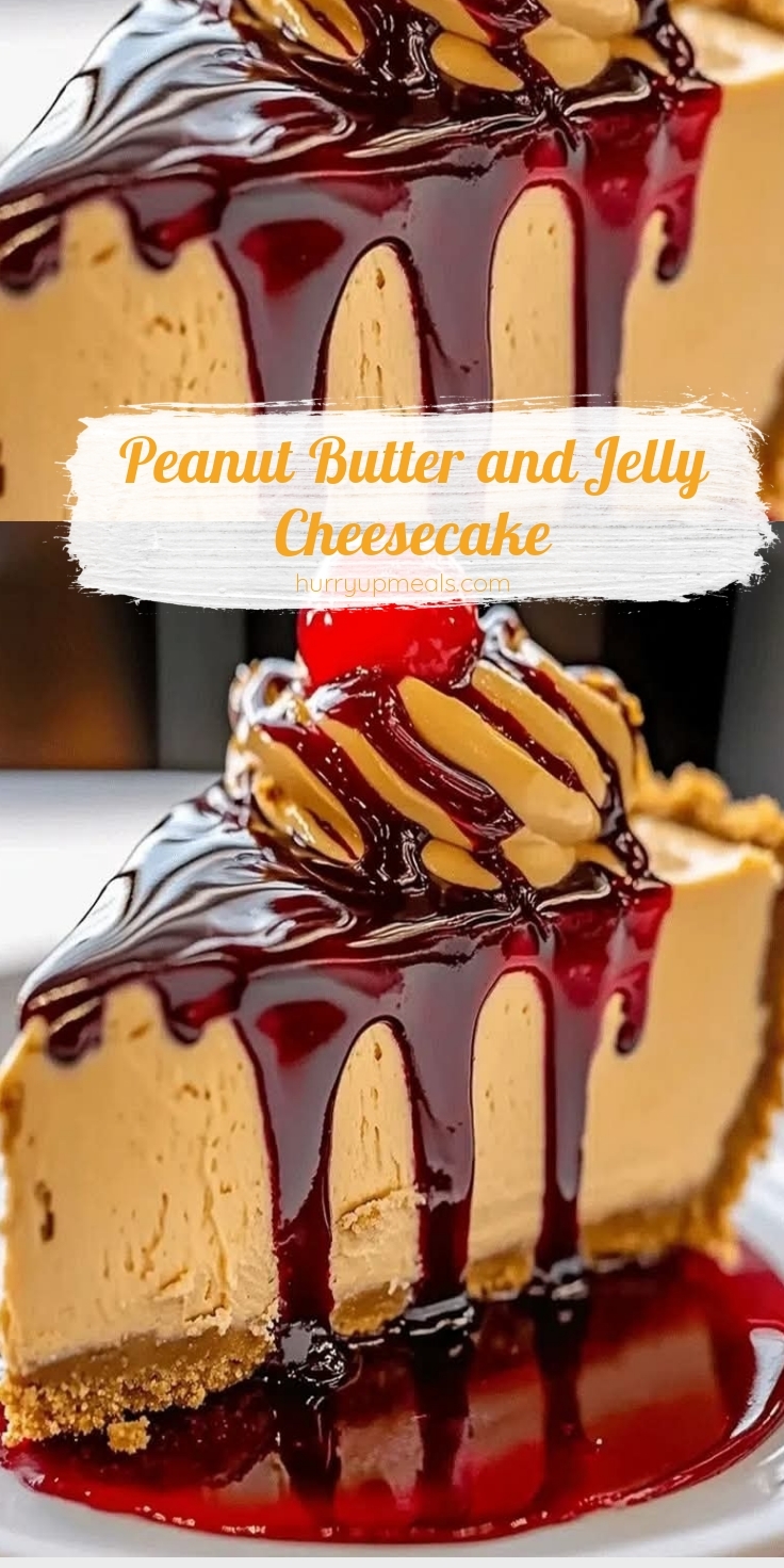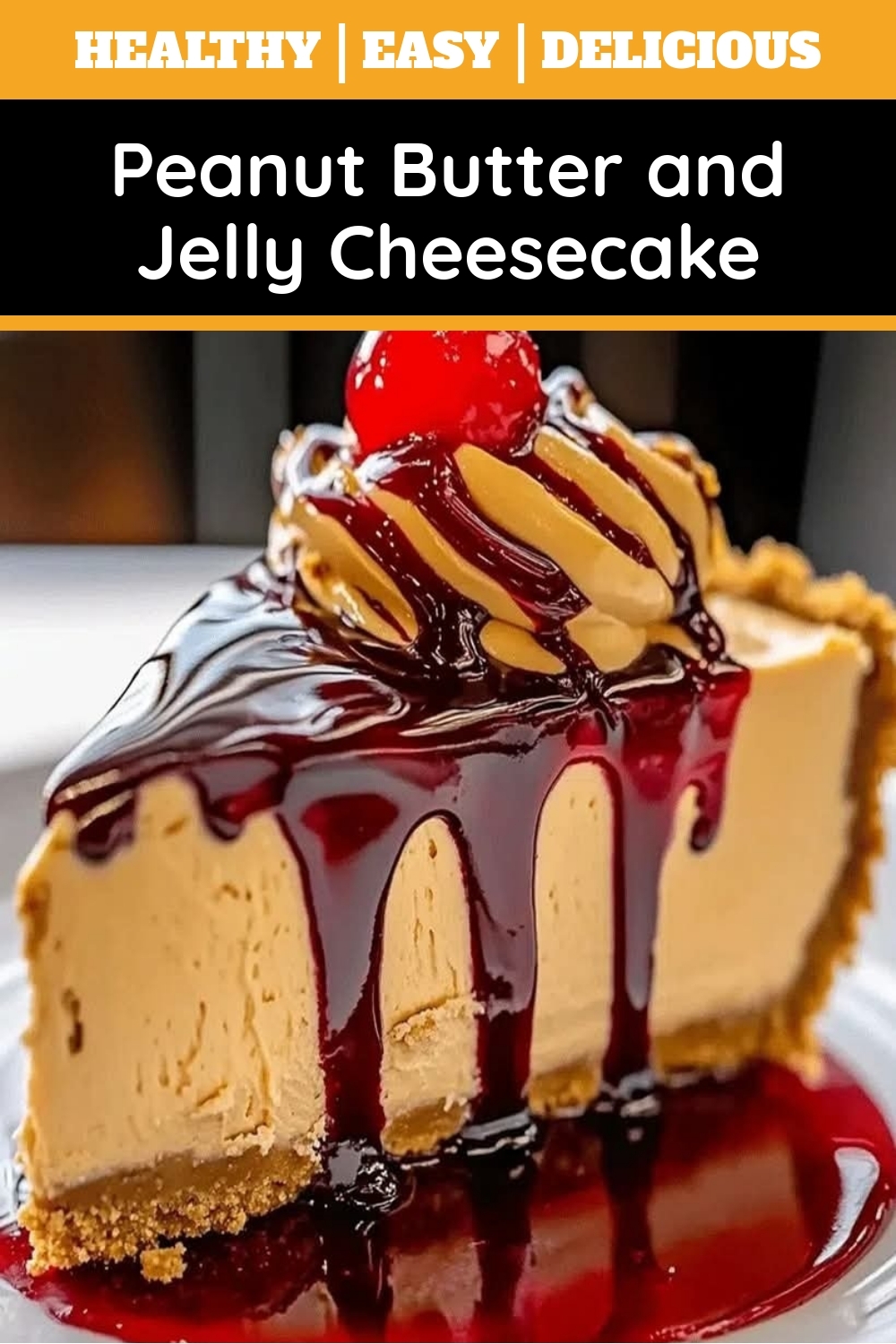 A decadent cheesecake combining the classic flavors of peanut butter and jelly in a creamy dessert.