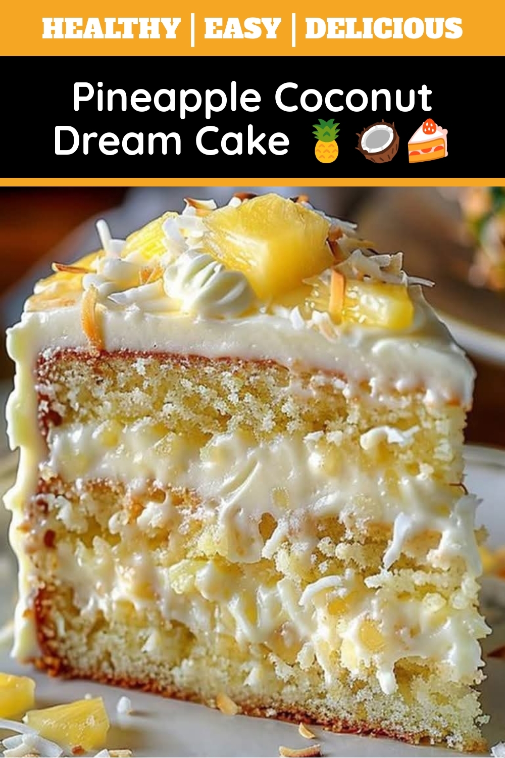The Pineapple Coconut Dream Cake 🍍🥥🍰 stays incredibly moist thanks to crushed pineapple in the batter and a coconut milk glaze. The natural juices from the pineapple and the richness of coconut milk keep every bite tender and flavorful.