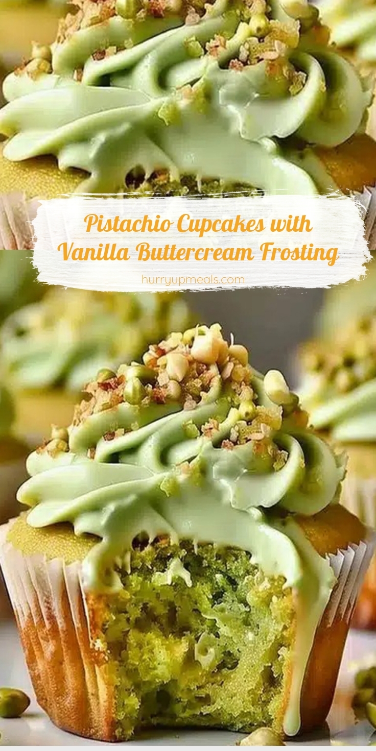 Delicate and moist pistachio cupcakes topped with a smooth and creamy vanilla buttercream frosting, perfect for any celebration or sweet treat.
