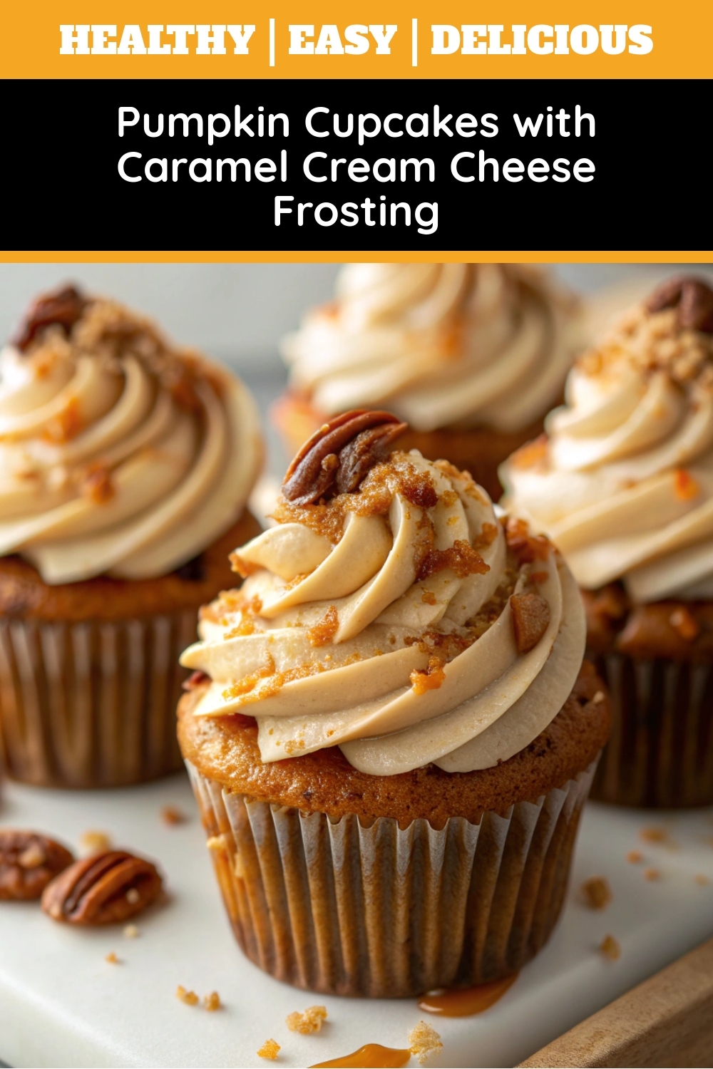 For a truly stunning presentation, serve these Pumpkin Cupcakes with Caramel Cream Cheese Frosting on a rustic wooden board or a tiered dessert stand. Moreover, drizzle a little extra caramel sauce over the top of each one just before serving for a glossy, gourmet touch. A sprinkle of toasted pecans or a tiny pinch of flaky sea salt makes a perfect garnish that adds both texture and flavor contrast.