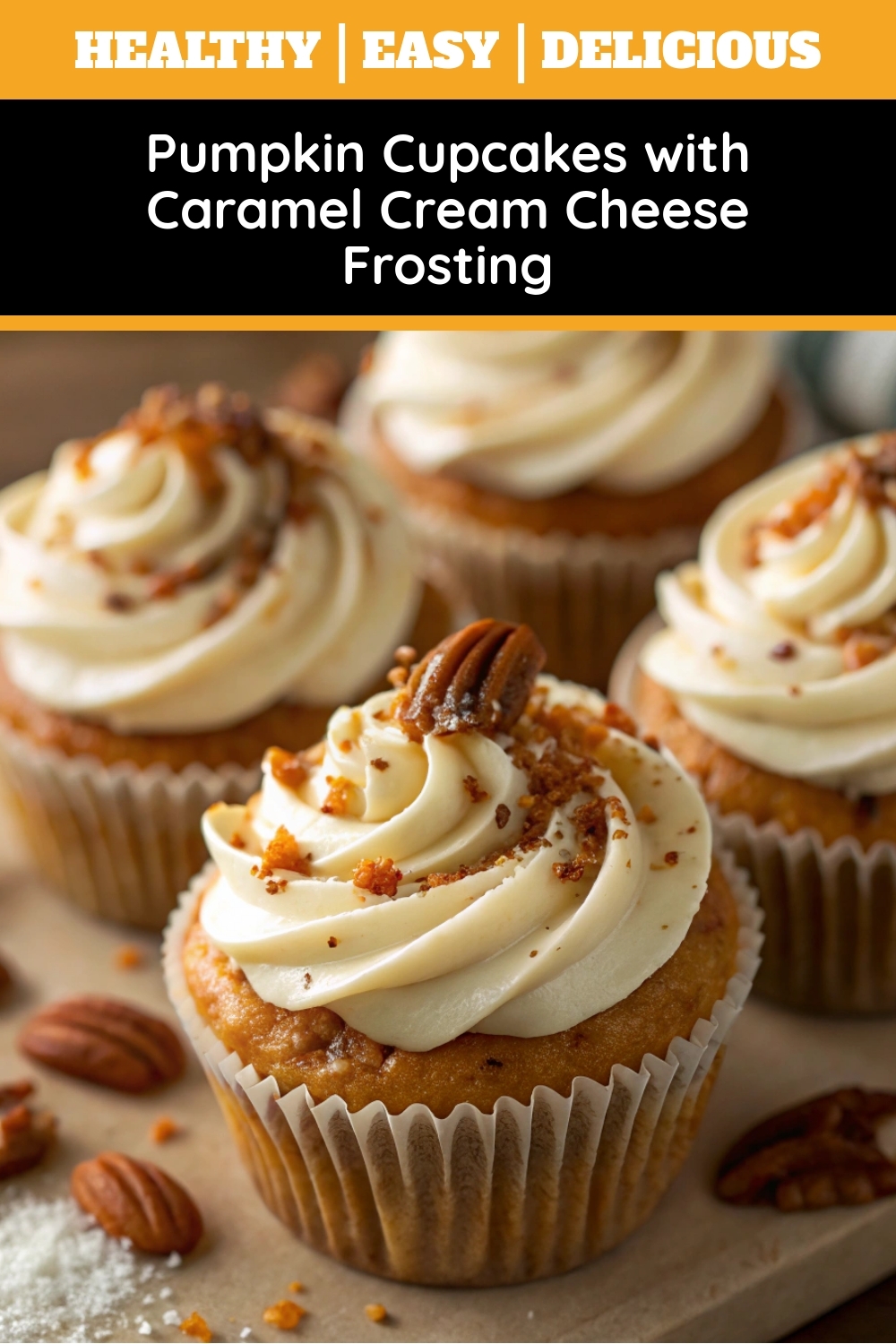 Pumpkin Cupcakes with Caramel Cream Cheese Frosting deliver genuine health benefits because pumpkin puree is packed with vitamin A. This essential nutrient supports strong vision and a robust immune system. You also get a good amount of dietary fiber from the pumpkin and any whole grains in the flour, which promotes healthy digestion and helps you feel satisfied. The warm spices like cinnamon and nutmeg are not just for flavor, as they contain antioxidants that combat inflammation. So, while you enjoy a decadent dessert, you are also nourishing your body with anti-inflammatory compounds. Although the frosting is a sweet indulgence, the cream cheese provides a small amount of protein and calcium. Therefore, enjoying Pumpkin Cupcakes with Caramel Cream Cheese Frosting means you are treating yourself to a dessert that contributes to your overall nutrient intake. It is a delicious way to enjoy the season’s produce.