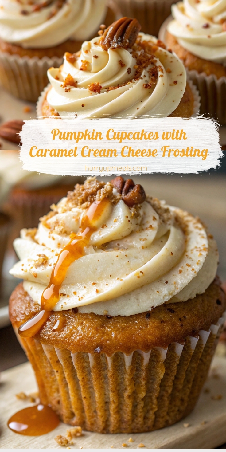 Pumpkin Cupcakes with Caramel Cream Cheese Frosting