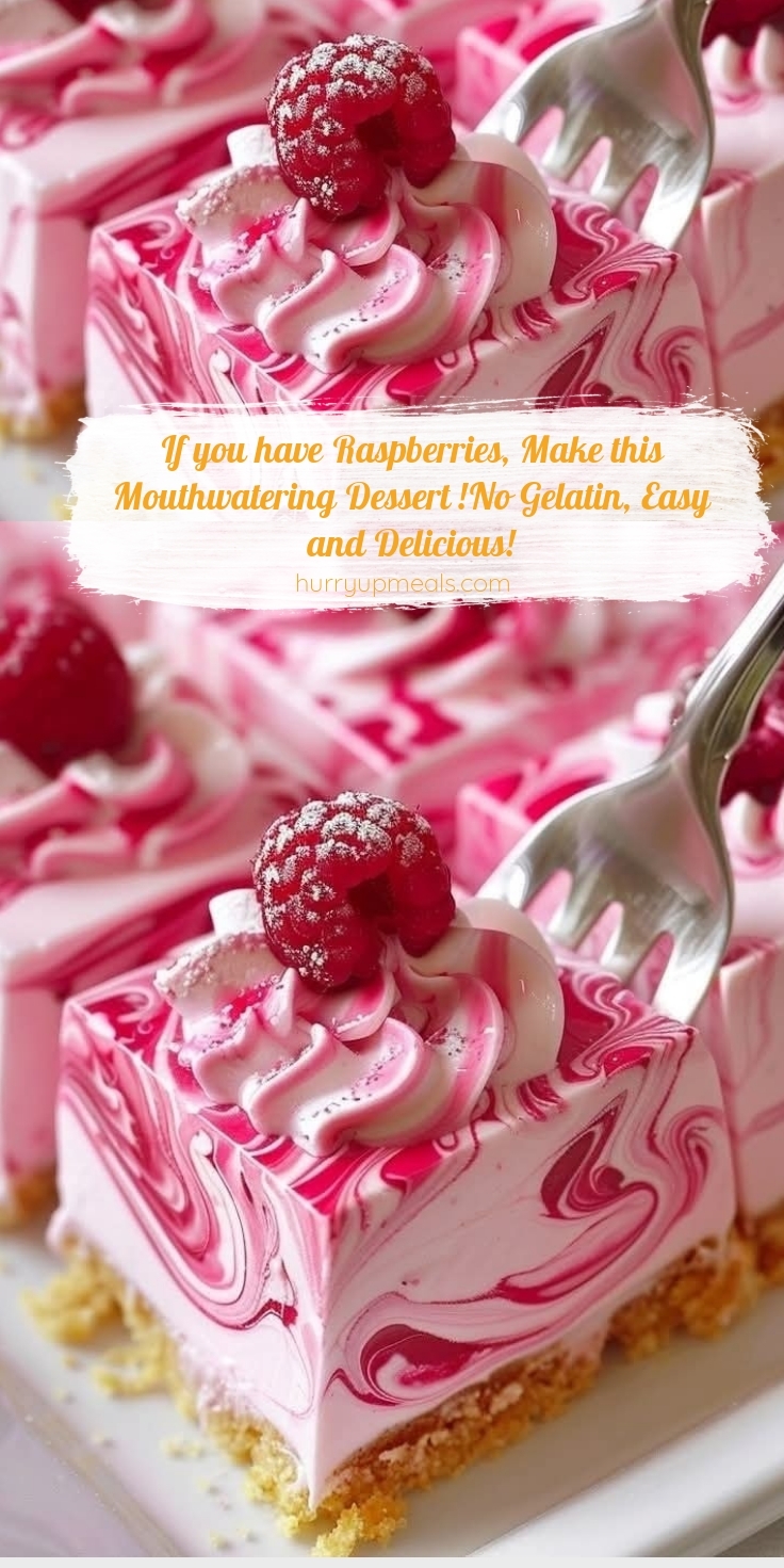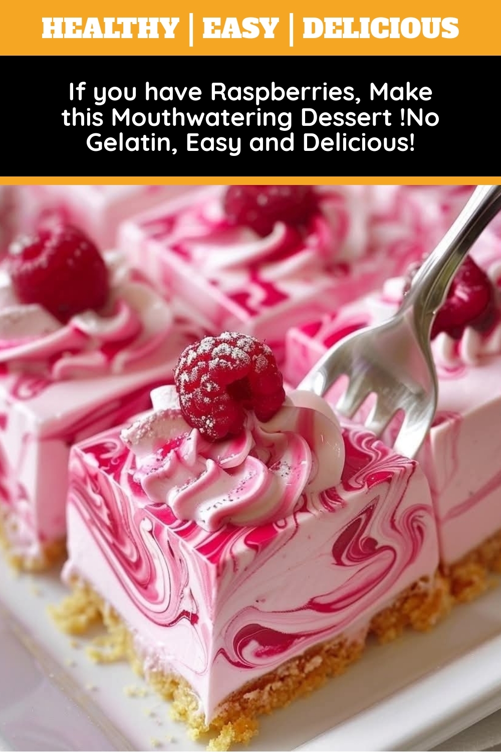 If you have Raspberries, Make this Mouthwatering Dessert !No Gelatin, Easy and Delicious! bursts with vibrant, tangy-sweet flavors that dance on your tongue. The juicy raspberries deliver a bright, fruity punch, while the creamy layers beneath soften their zing with a luscious, velvety richness. Each bite melts in your mouth, thanks to the airy, mousse-like texture that contrasts beautifully with the occasional pop of fresh berry. The dessert smells heavenly, too, with a fragrant aroma of vanilla and citrus that makes it irresistible even before the first spoonful. Because the recipe skips gelatin, the texture stays light and silky, so it feels indulgent without being heavy. A hint of lemon zest or a drizzle of honey can elevate the natural sweetness of the raspberries, making every forkful a perfect balance of tart and tender. Even though it’s simple to prepare, the dessert tastes gourmet, especially when topped with a sprinkle of crushed nuts or a dollop of whipped cream for extra decadence.