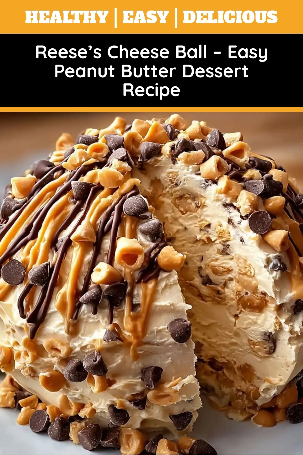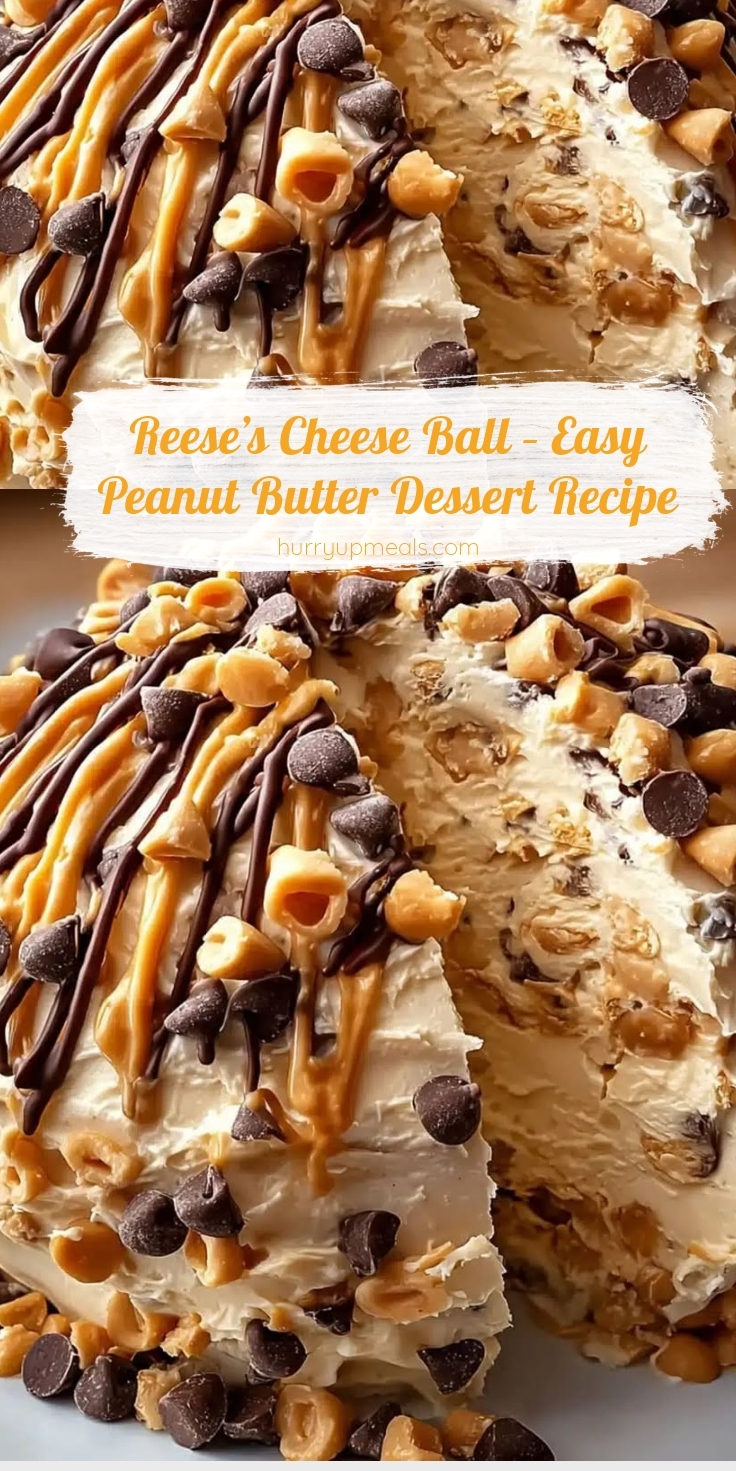A creamy, sweet peanut butter cheese ball loaded with Reese’s pieces and chocolate chips, perfect for dessert or snacking.