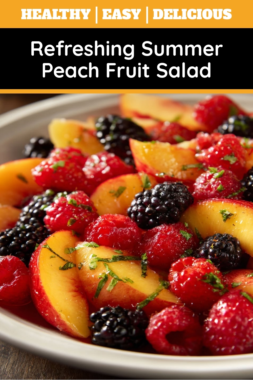 A light and vibrant fruit salad featuring juicy peaches, berries, and a hint of citrus for a perfect summer treat.