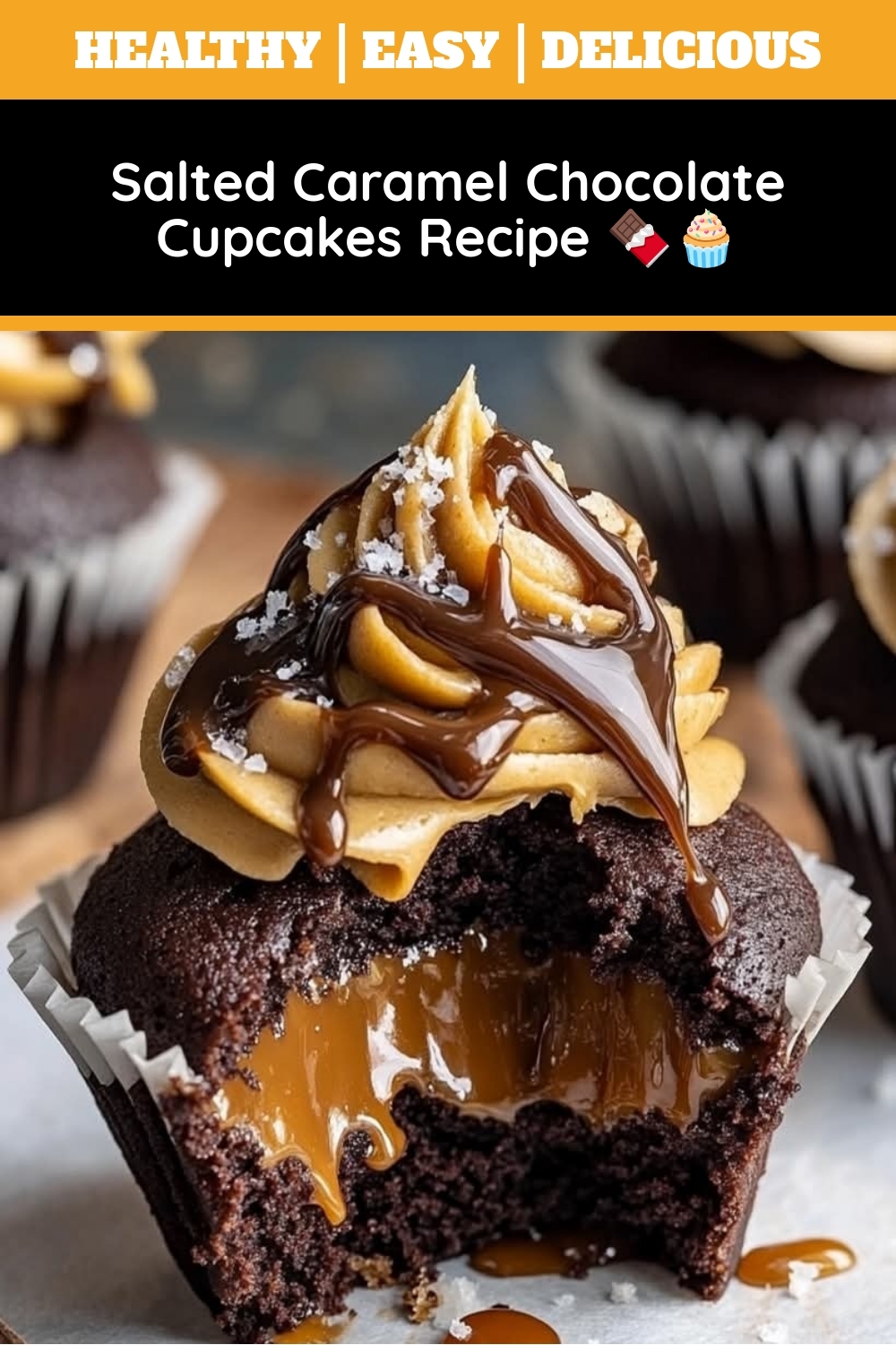 Decadent chocolate cupcakes filled with salted caramel and topped with rich chocolate frosting.