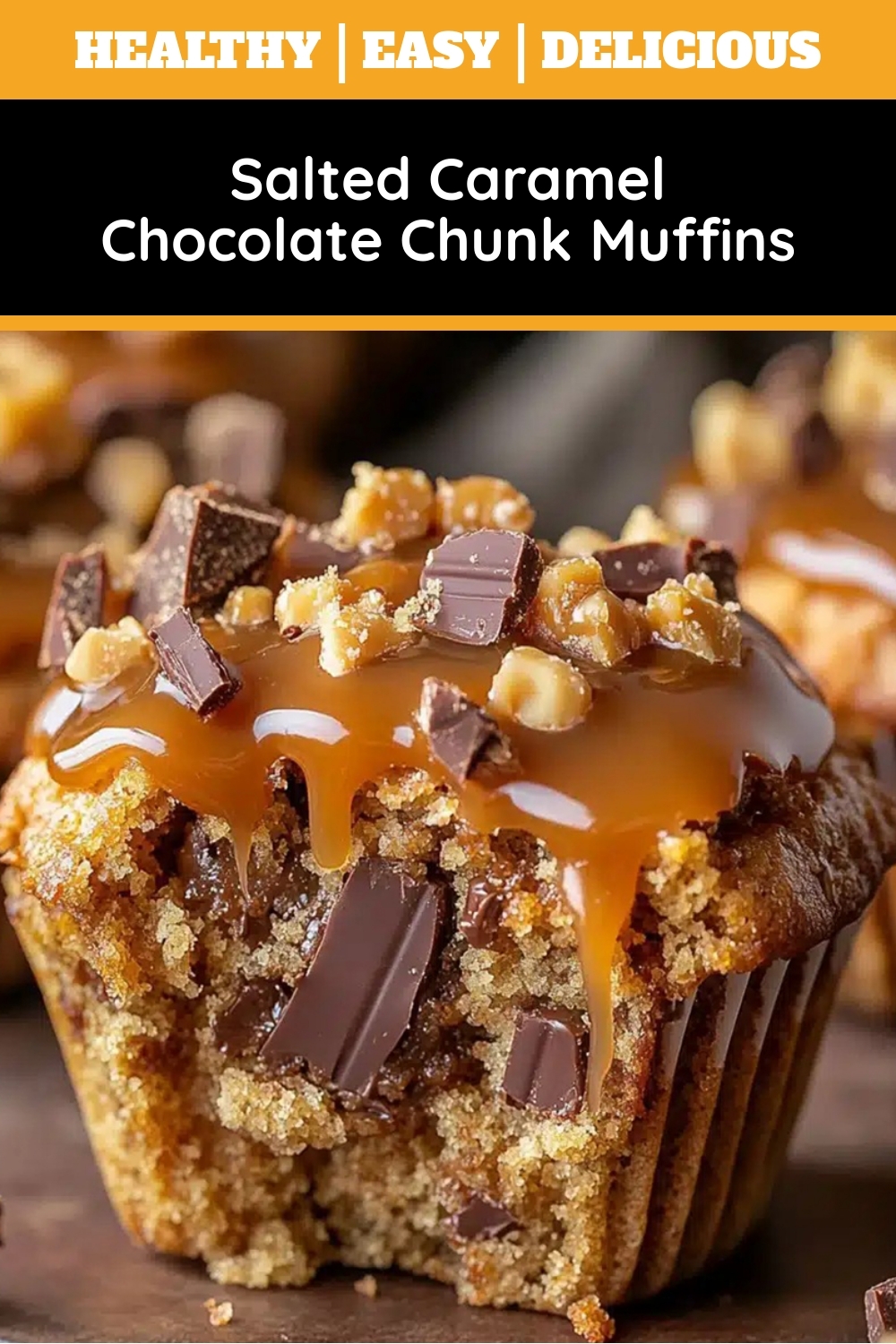 Decadent muffins loaded with chocolate chunks and swirled with homemade salted caramel sauce for the perfect sweet and salty treat.