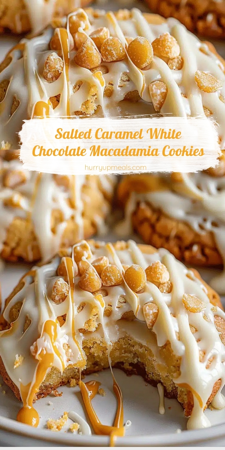 Salted Caramel White Chocolate Macadamia Cookies deliver a symphony of flavors and textures that make every bite irresistible. The buttery, crisp edges give way to a soft, chewy center, while the rich white chocolate melts luxuriously on your tongue. Each cookie bursts with the sweet, creamy notes of caramel, perfectly balanced by a hint of sea salt that lingers deliciously. The fragrant vanilla and toasted macadamia nuts add depth, creating a nutty crunch that contrasts beautifully with the tender dough. When you take a bite, the aroma of brown sugar and butter fills the air, making it impossible to resist a second (or third) cookie. Because the salted caramel swirls throughout, every mouthful offers a delightful surprise, ensuring these Salted Caramel White Chocolate Macadamia Cookies are anything but ordinary.