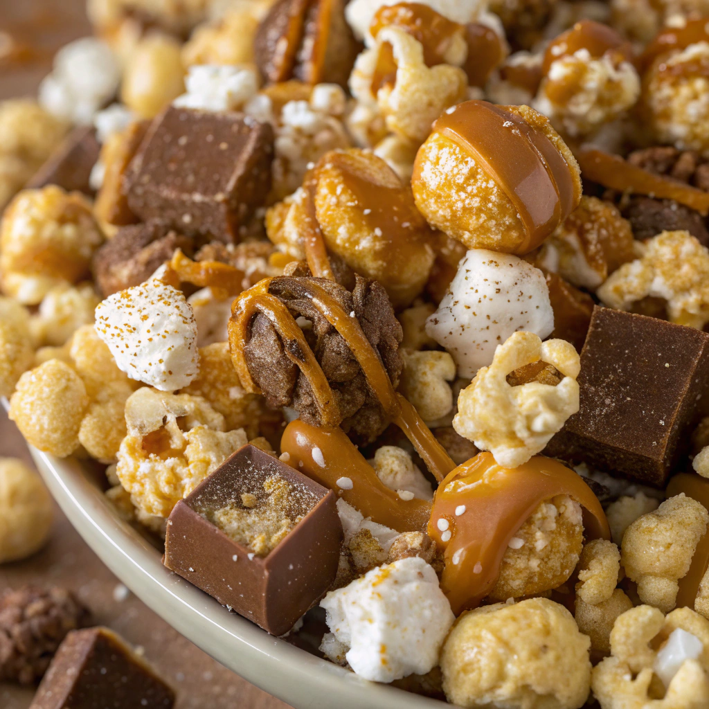 This delightful snack mix feels like a direct descendant of community harvest festivals and old-world food preservation. Although caramel corn itself has deep American roots, often linked to fairs and carnivals, the act of creating a sweet and salty mix for a celebration is a global tradition. In many cultures, families combine whatever nuts, seeds, or grains they have on hand with a sweet binder to create a special treat for holidays and gatherings.