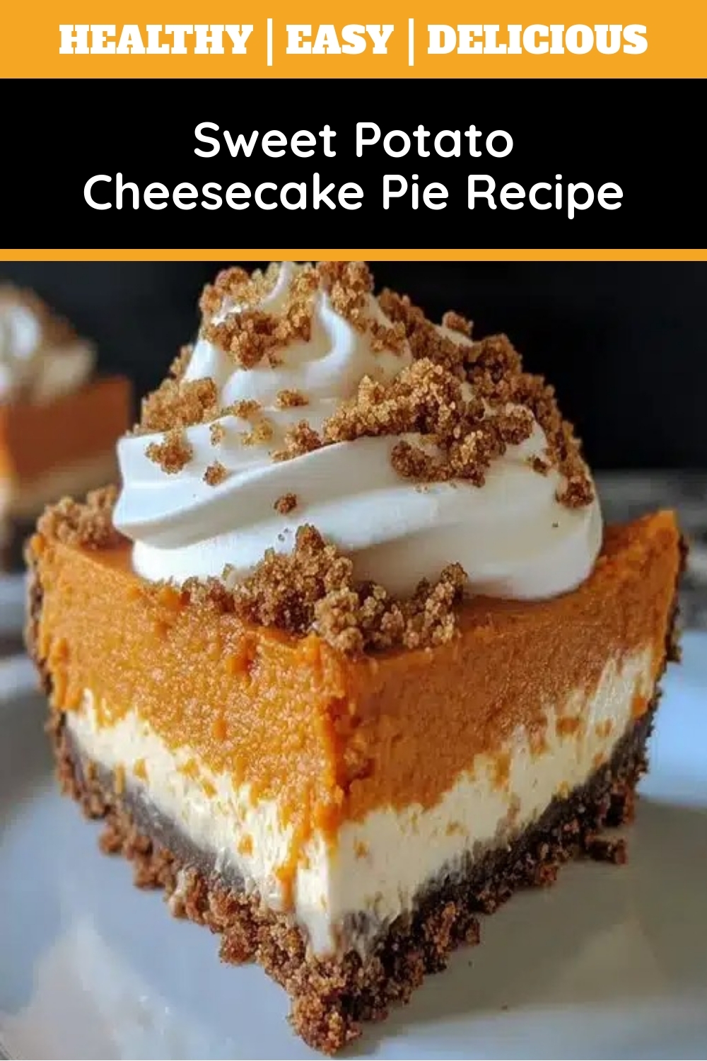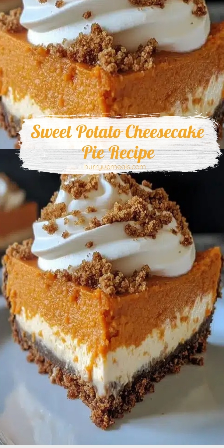 Sweet Potato Cheesecake Pie Recipe delivers a symphony of flavors and textures that make every bite unforgettable. The creamy cheesecake layer melts in your mouth, while the sweet potato filling adds a velvety richness with earthy undertones. Fragrant spices like cinnamon and nutmeg warm the palate, enhancing the natural sweetness of the roasted sweet potatoes. The buttery graham cracker crust provides a crisp contrast, creating a perfect balance between tender and crunchy. When you take a forkful, the airy whipped topping adds a light finish, so each slice feels indulgent yet refreshing. Because the flavors deepen as they meld, this dessert tastes even better the next day. Whether served chilled or at room temperature, Sweet Potato Cheesecake Pie Recipe is a showstopper that delights the senses.