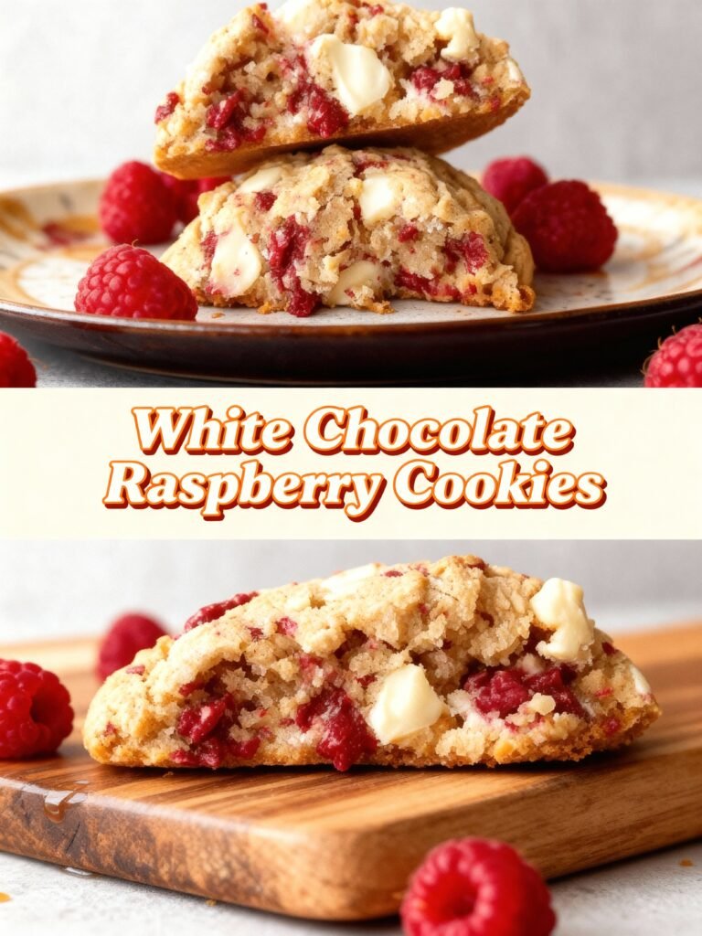Soft and chewy cookies featuring the flavors of sweet and tart raspberries paired with creamy white chocolate, a delicious twist on a traditional chocolate chip cookie.